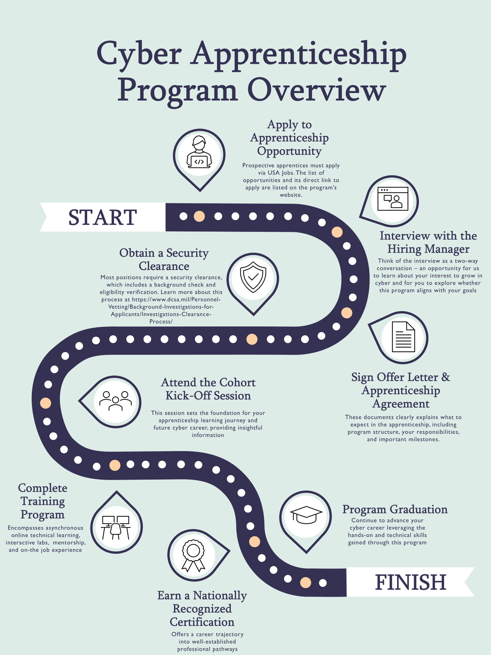 Ready to participate in the DoW Cyber Apprenticeship Program? The following instructions outline the key steps in the process: