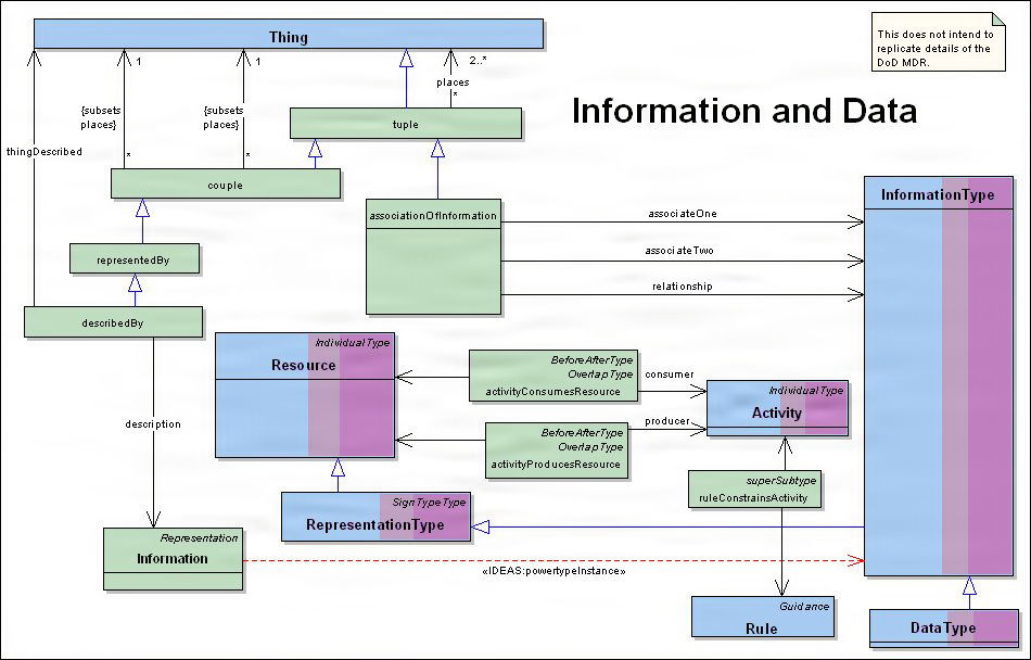 - Since Information is a Thing, Information can describe other Information, e.g., metadata.